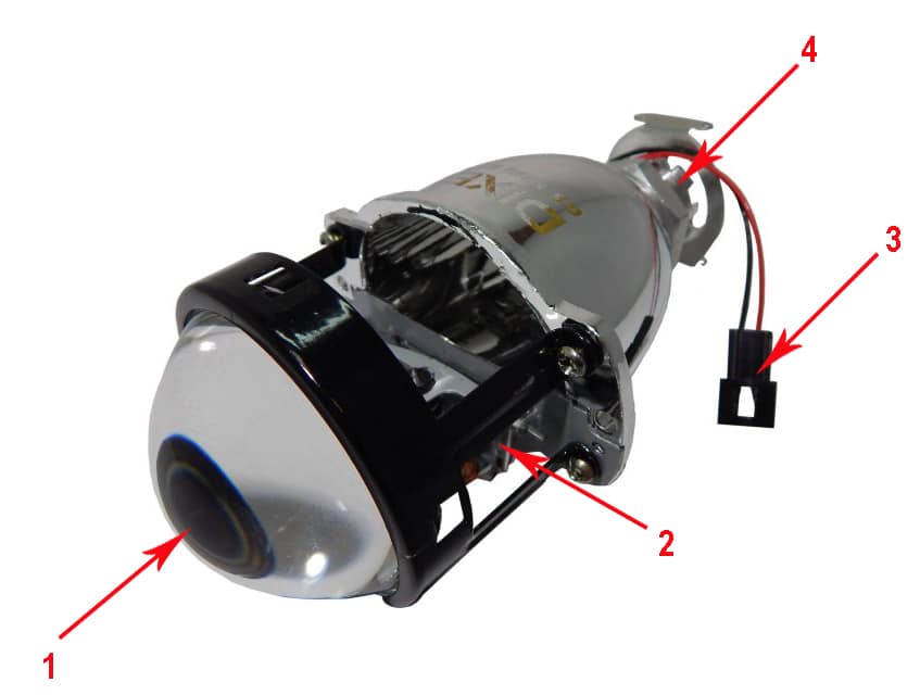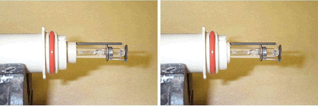 - puoi essere sicuro che la lampada non sia completamente installata, aggiungi gli elementi al faro, quindi misuralo sulla lampada allo xeno e sembra ancora una lampada alogena più lo schermo;