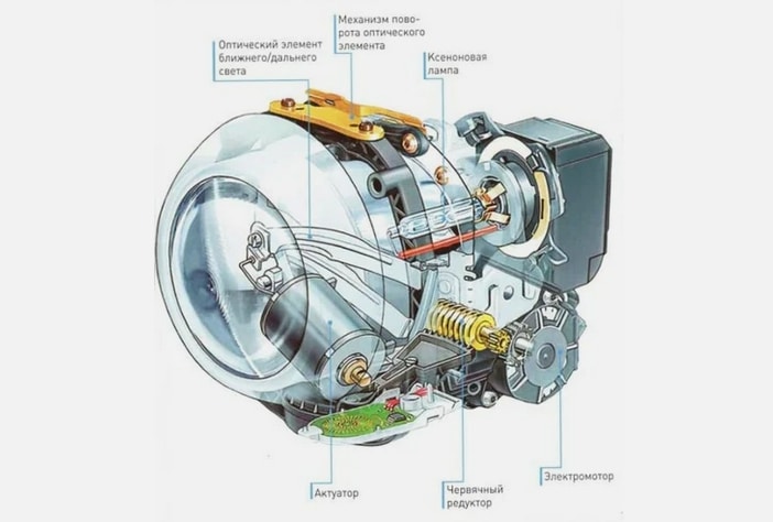 Esistono due diverse modalità per bi-xenon e, che sono due modalità per lavorare sul farovet: vicino e lontano. Forse ci sono differenze nel design. Alcuni dei tyah strisciano il movimento dell'elettrodo per l'interruttore, spostandolo nello spazio esterno sulla manovella. In altri bacini ho compreso i veli speciali.