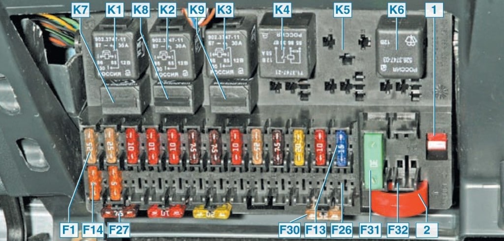 La preposizione F10 con un valore nominale di 7,5 A ("Norma") o 10 A ("Lux") è una scusa per l'illuminazione interna in "Norma" e in "Lux".