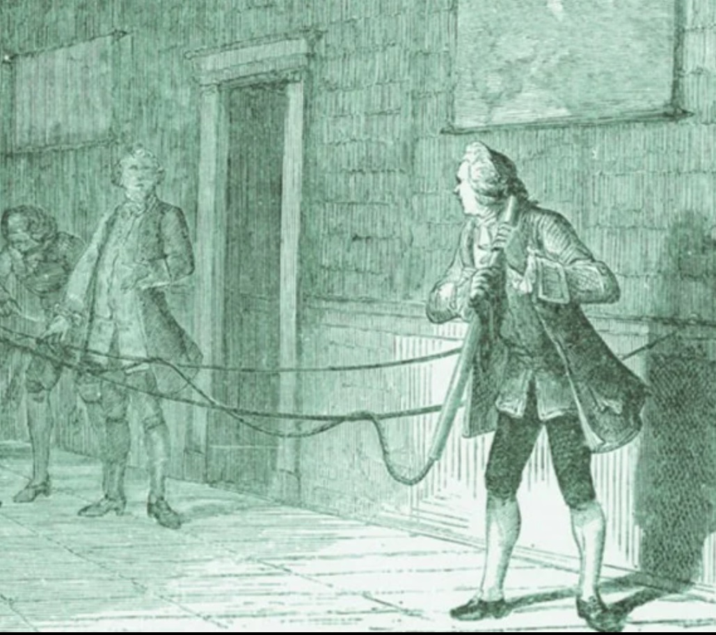 Esperimento su von Guericke per trasferire l'elettricità a distanza dallo scienziato inglese Stephen Gray. A quel gledashe, come un korkt, una pipa di vetro storta, il terreno e attirando leki obekti, kogato trbata se tark.