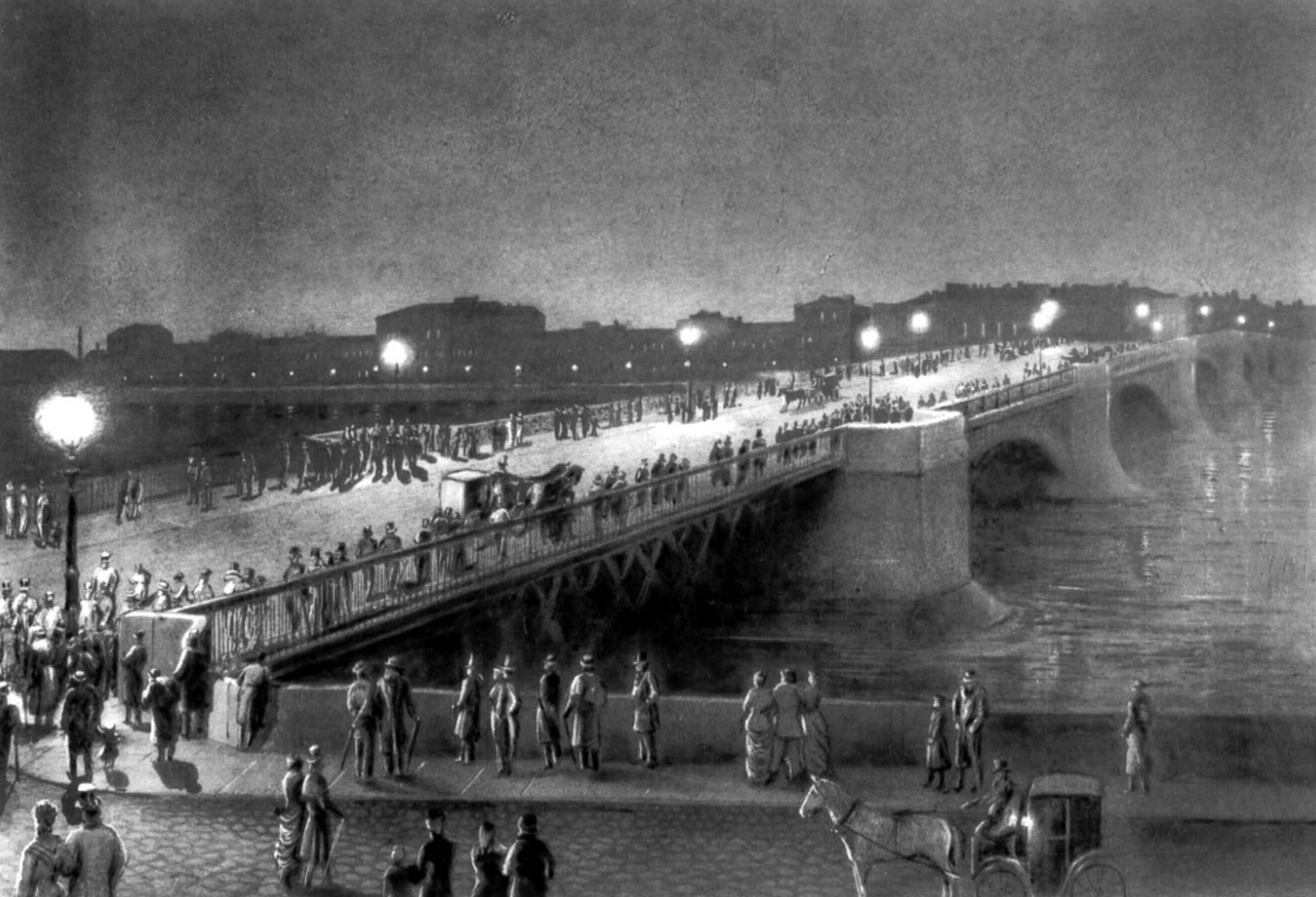 Takiva lampi se utilizzata per la prima volta durante l'illuminazione elettrica sul ponte Liteini a San Pietroburgo prez 1879