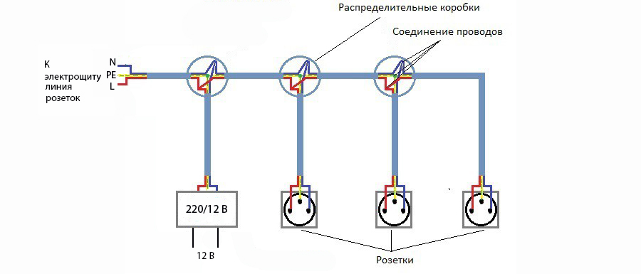 Facciamo uno schema sul collegamento dei contatti e 220 V. Tenere presente che i contatti verranno memorizzati su una linea separata tramite dispositivi di protezione tecnica. La linea collegata è collegata a un trasformatore step-down 220/12 V.