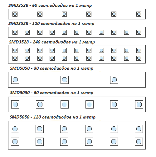 Le merci valgono sempre per una lampada del genere da 12 V, per i modelli da 220 V questa regola non funziona, potrebbe essere necessario tagliare lungo le linee di marcatura, ma solo mezzo metro.