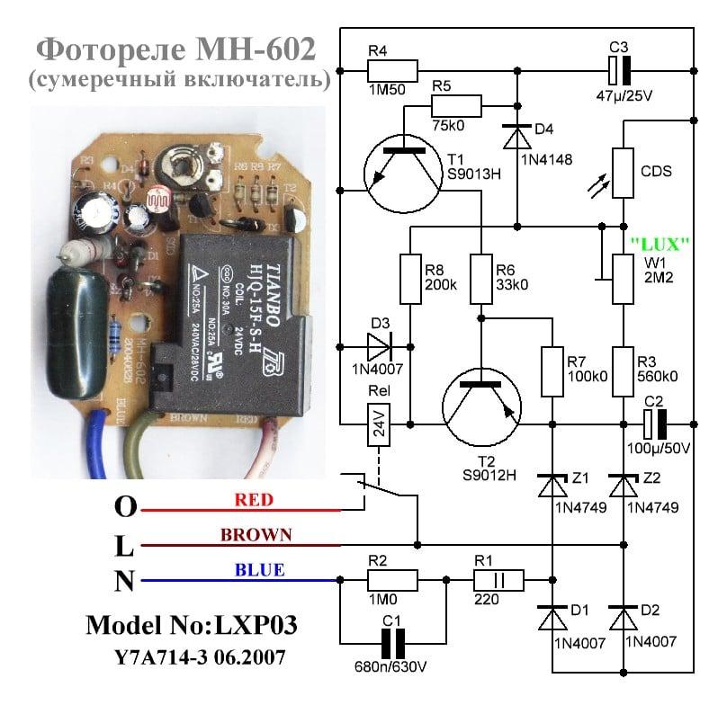 Il dispositivo e il circuito sul fotorelè per l'illuminazione stradale
