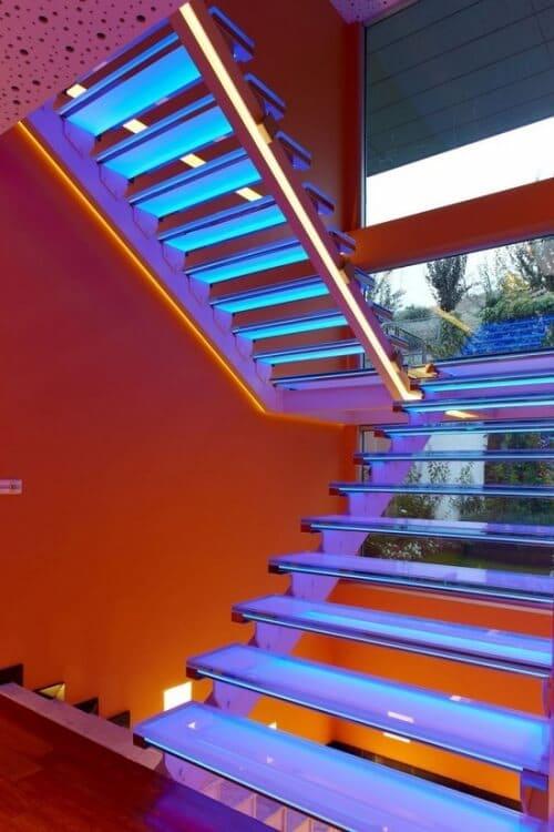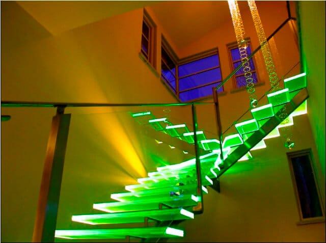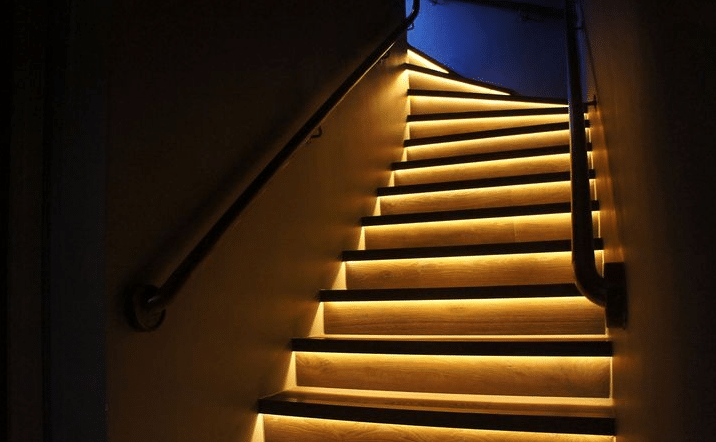 Qualsiasi schema scelto può essere adattato e migliorato. Ad esempio, se metti LED multicolori dietro il cimitero, cambierai l'intera vista in retroilluminazione. Un'altra soluzione interessante è mettere i sensori su ogni gradino.In Tozi, il case è ancora leggero in modo coerente, quindi spostalo per un po'. La soluzione di Tova è sia un'opera di considerevole discordia materiale.