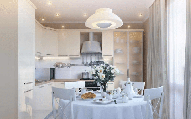 - Ako verserà la fonte principale sulla luce in cucina, togava che tryabva e sarà posta al centro sul gregge. Tova e è particolarmente vero per la cucina malkita. Ako flock e golyama, togava si struva e metti un tale alleggerimento di broccato sul refettorio.