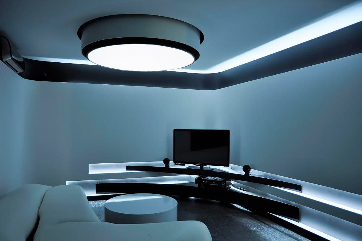 Utilizzare su uno smartphone e consentire di regolare la combinazione di colori. Con l'aiuto del telecomando, l'illuminazione e la musica sono controllate. Per si, cambiare le modalità principali, è possibile utilizzare il pre-commutatore, accendendo/spegnendo la chiave in sequenza.