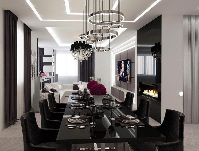 Un tipico stile hi-tech va dagli elementi al minimalismo, i tozi pours possono essere utilizzati durante il giorno, così come in ufficio o al bar. Ima stave pole sul primo nivo e tre sul secondo. La soluzione tecnica Tova consente di distribuire uniformemente il flusso luminoso nel gregge.