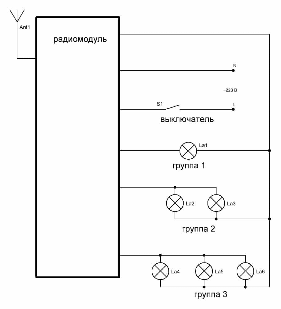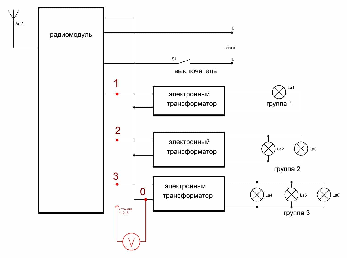 - Canali Broy… Il nostro relè radio ha tre canali, ma se necessario, puoi utilizzare il dispositivo per canali più piccoli o più grandi. Nel primo caso è meglio provare a combinare due gruppi di lampade in uno, nel secondo non utilizzare un canale aggiuntivo.
