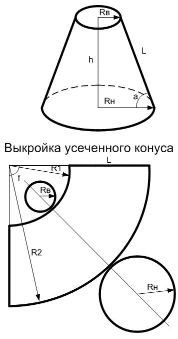 - Izmervame obikolkata sulla parte superiore e inferiore del muro (motivo per cui il cono è tagliato), così come la distanza tra i tezi del muro.