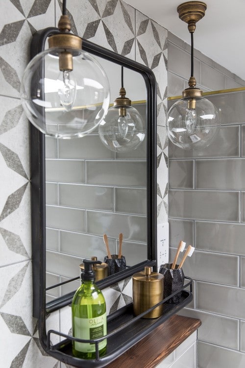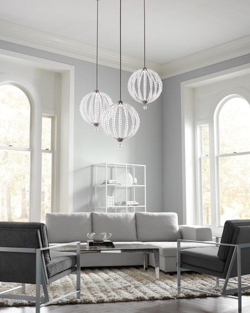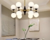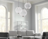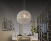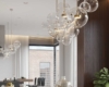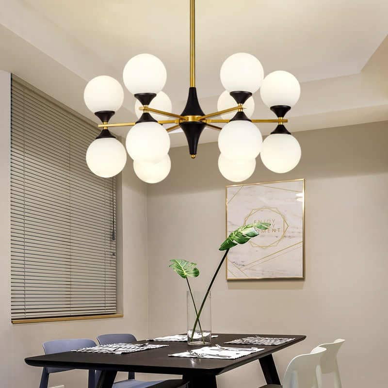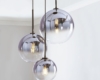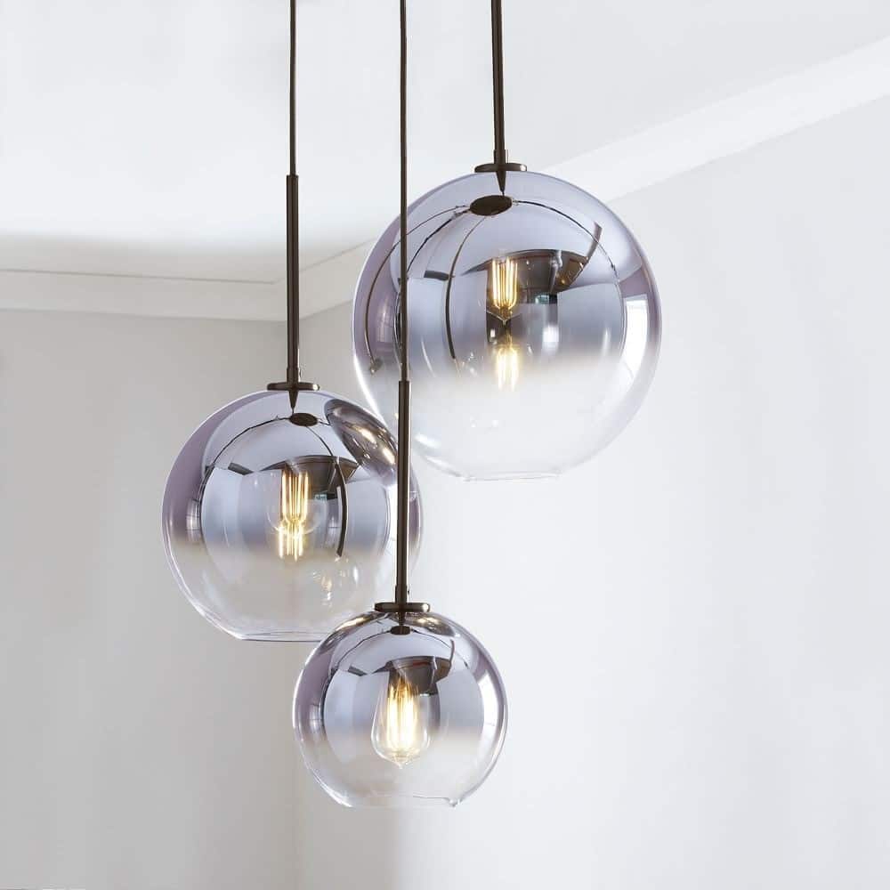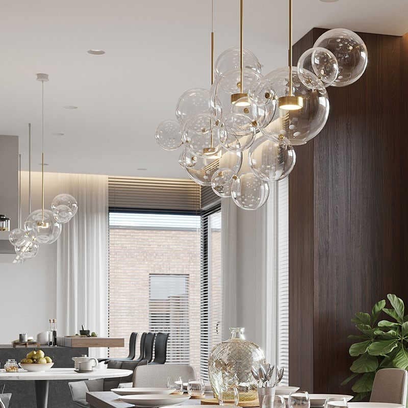 - In cucina, l'illuminazione con paralumi rotondi in vetro crea un'atmosfera accogliente.