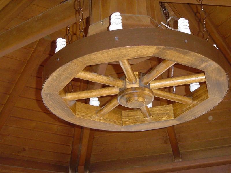 È stato elaborato in modo tale in polyley, dall'ordine alla difficoltà del precedente. Ma l'aspetto è molto impressionante e skjpo. Questa lampada è adatta per una casa, arredata in stile rurale o Tavan.