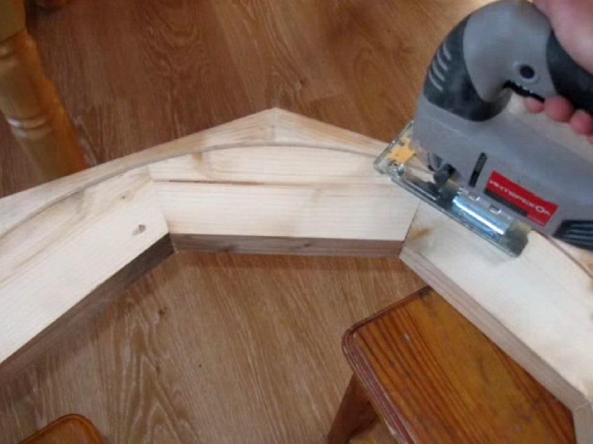 Tappa 2: Con l'aiuto di un trion forato, chiudete il cerchio sul contorno delle assi.
