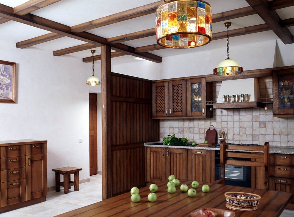 Se sviluppato su un modello nelle aree rurali, viene utilizzato attivamente in legno, vetro, tessuti e forgiati decorativi, trasformandolo in qualche modo in un'enfasi sul prodotto. Sì, se vuoi decorare una villa del villaggio in uno stile rurale, ma un tale interno, sì, non sembrare banale, preporchvame e guarda la polyleite ravvicinata, che è vetrate colorate (tecnica di Tiffany). Saranno anche una meravigliosa aggiunta alla stanza o alla cucina.