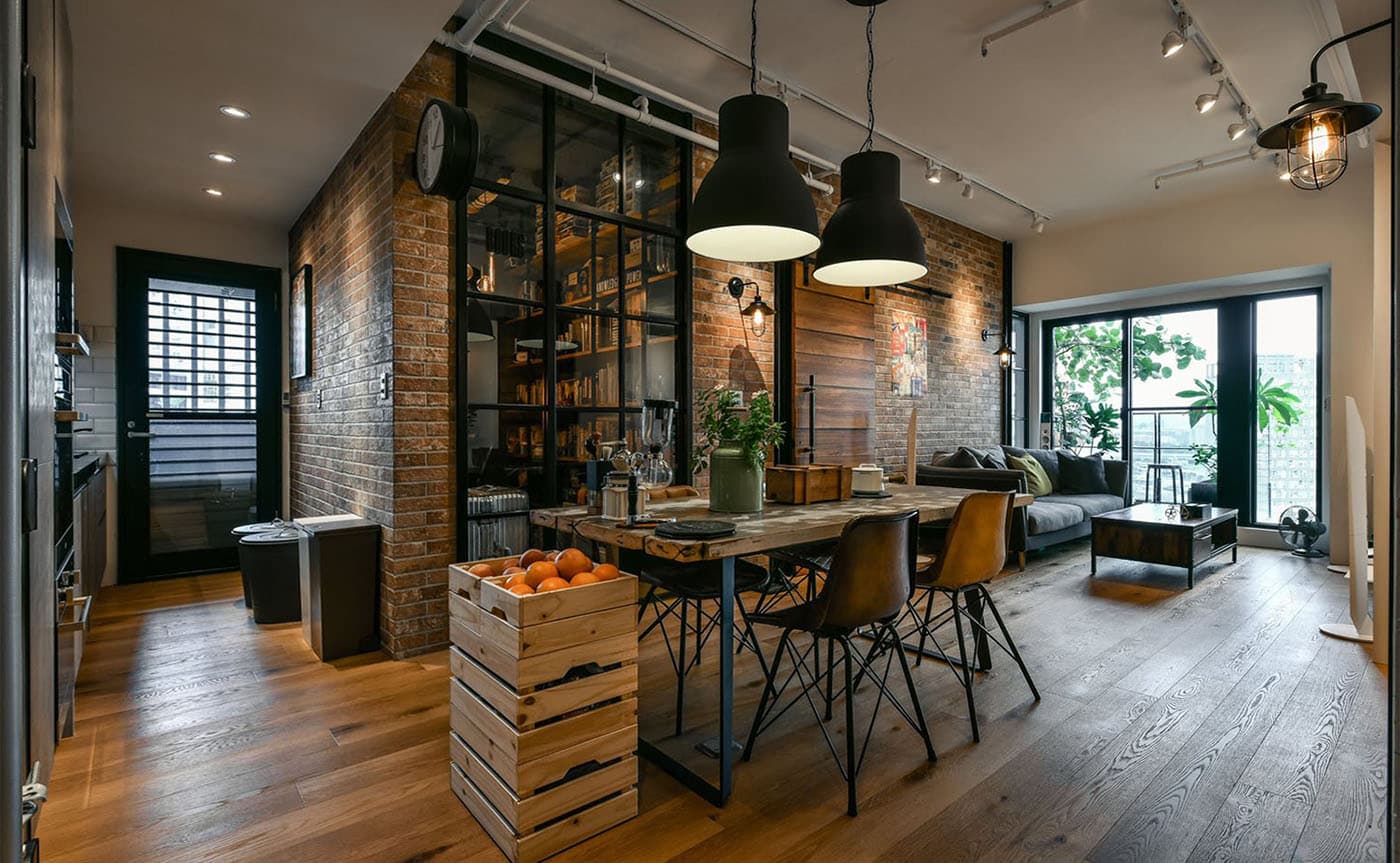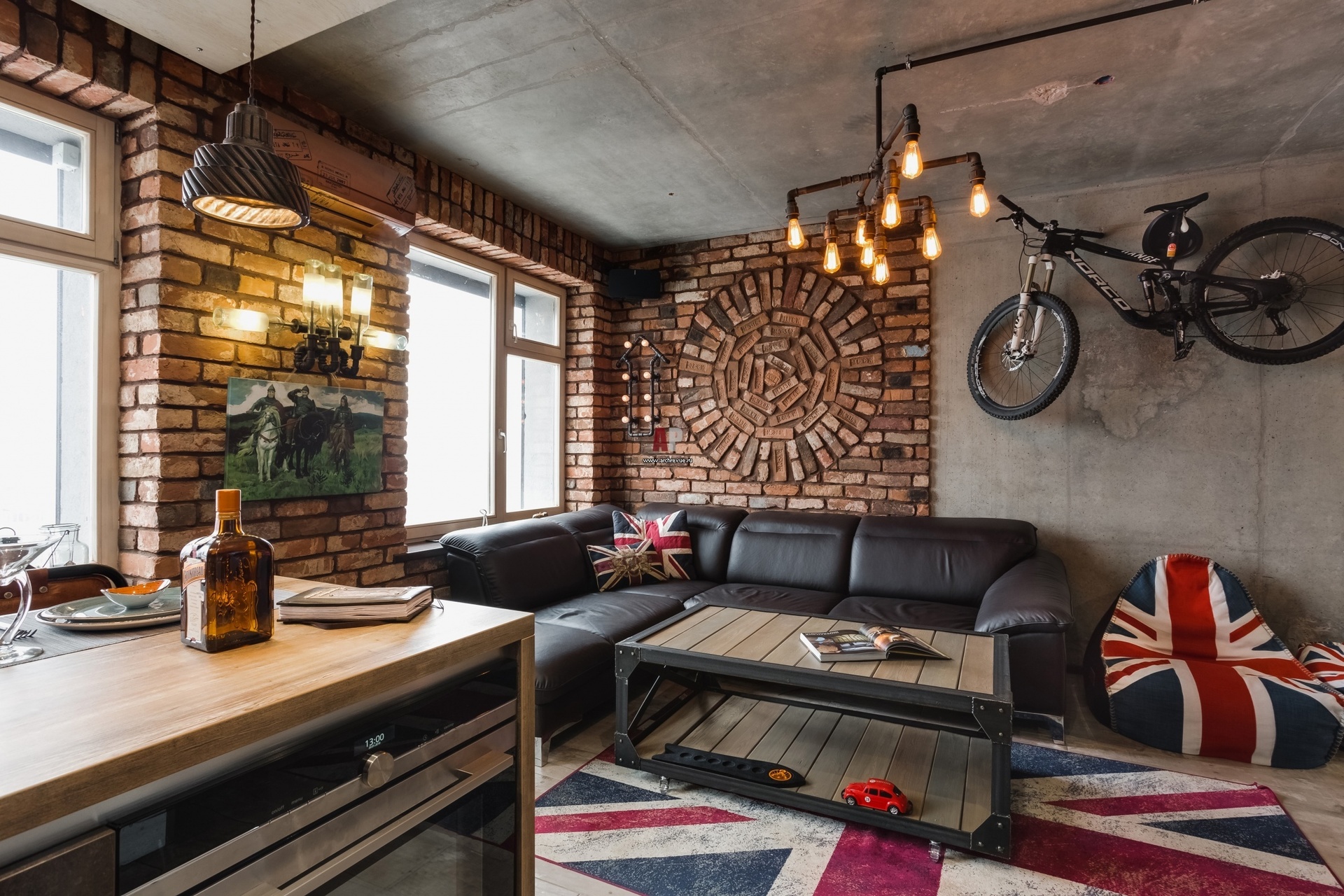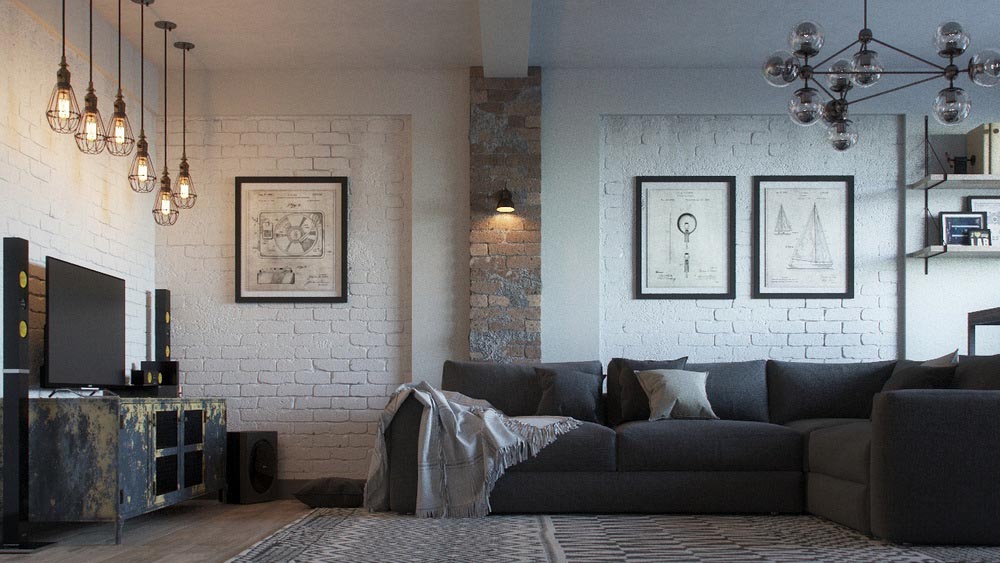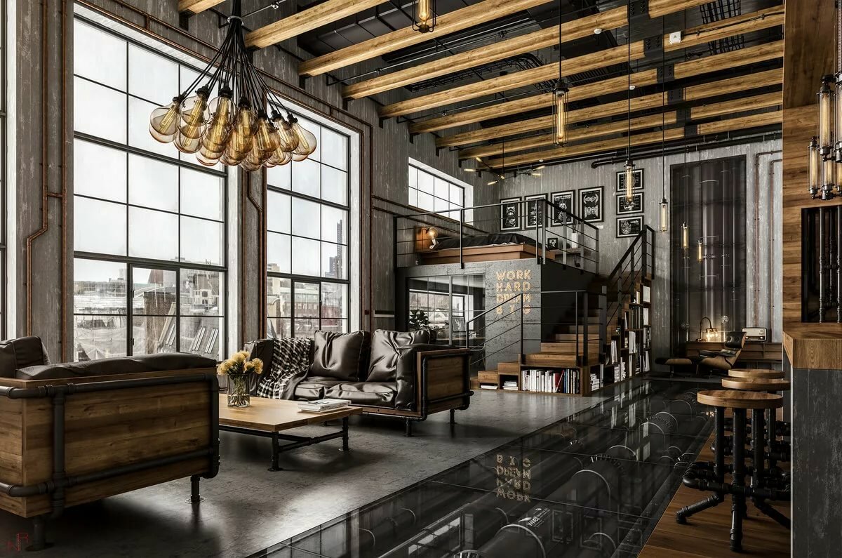 Interni in stile loft con illuminazione primaria e secondaria indietro kjm sdzharzhanieto ↑