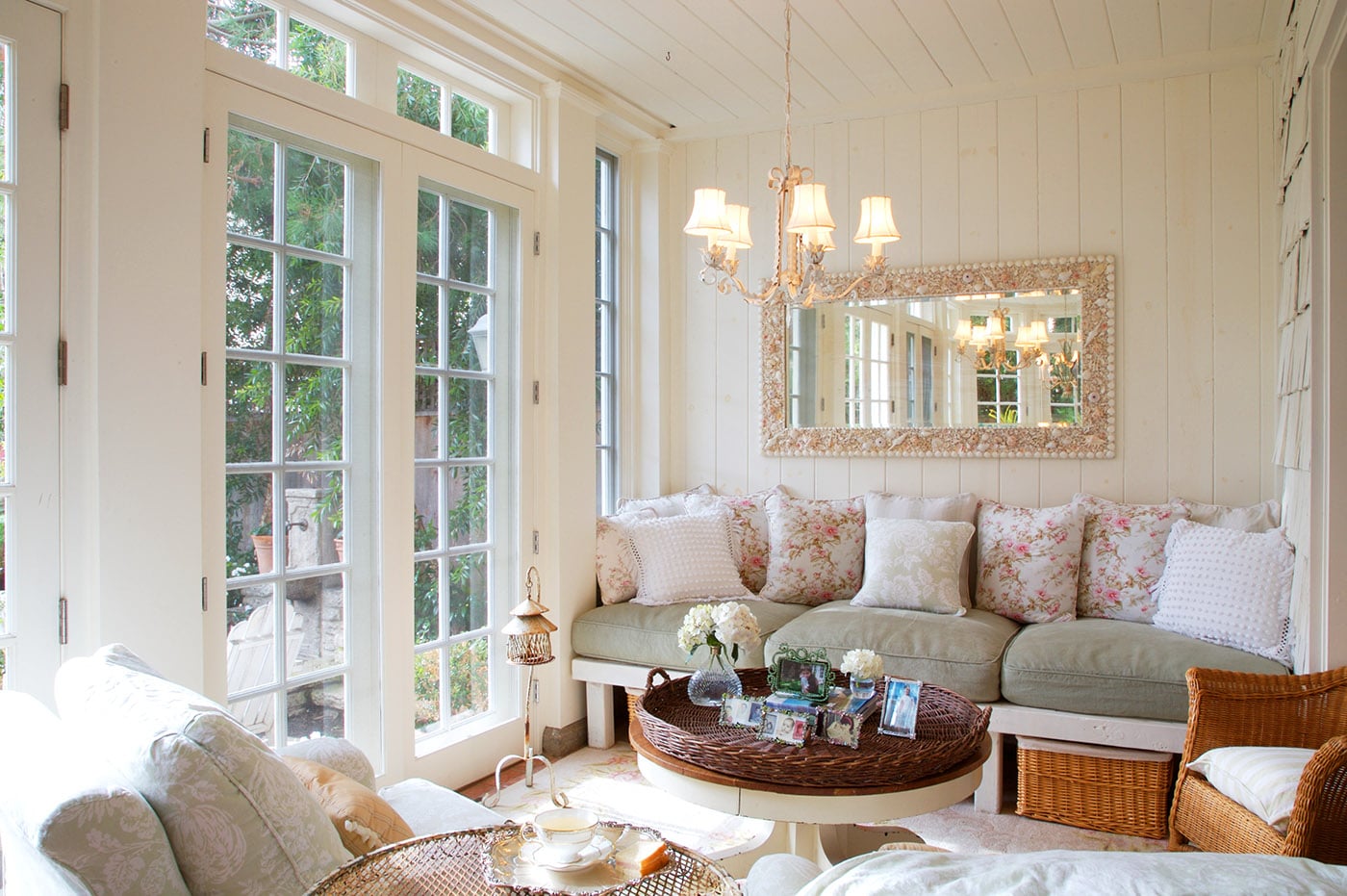 L'intera immagine all'interno si basa su singoli dettagli. Provenza educata, mek inzuppato, luce diffusa, con un accento speciale nell'arredamento, progettato per creare un'atmosfera accogliente e romantica. Forgiati, tessuti, vetrate colorate, fioriti con balza o tenerezza: tale è la varietà, che dà libertà all'immaginazione. Contrariamente al compagno, quando si acquista una lampada del genere, è necessario prendere in considerazione qualsiasi sfumatura e sottigliezza.