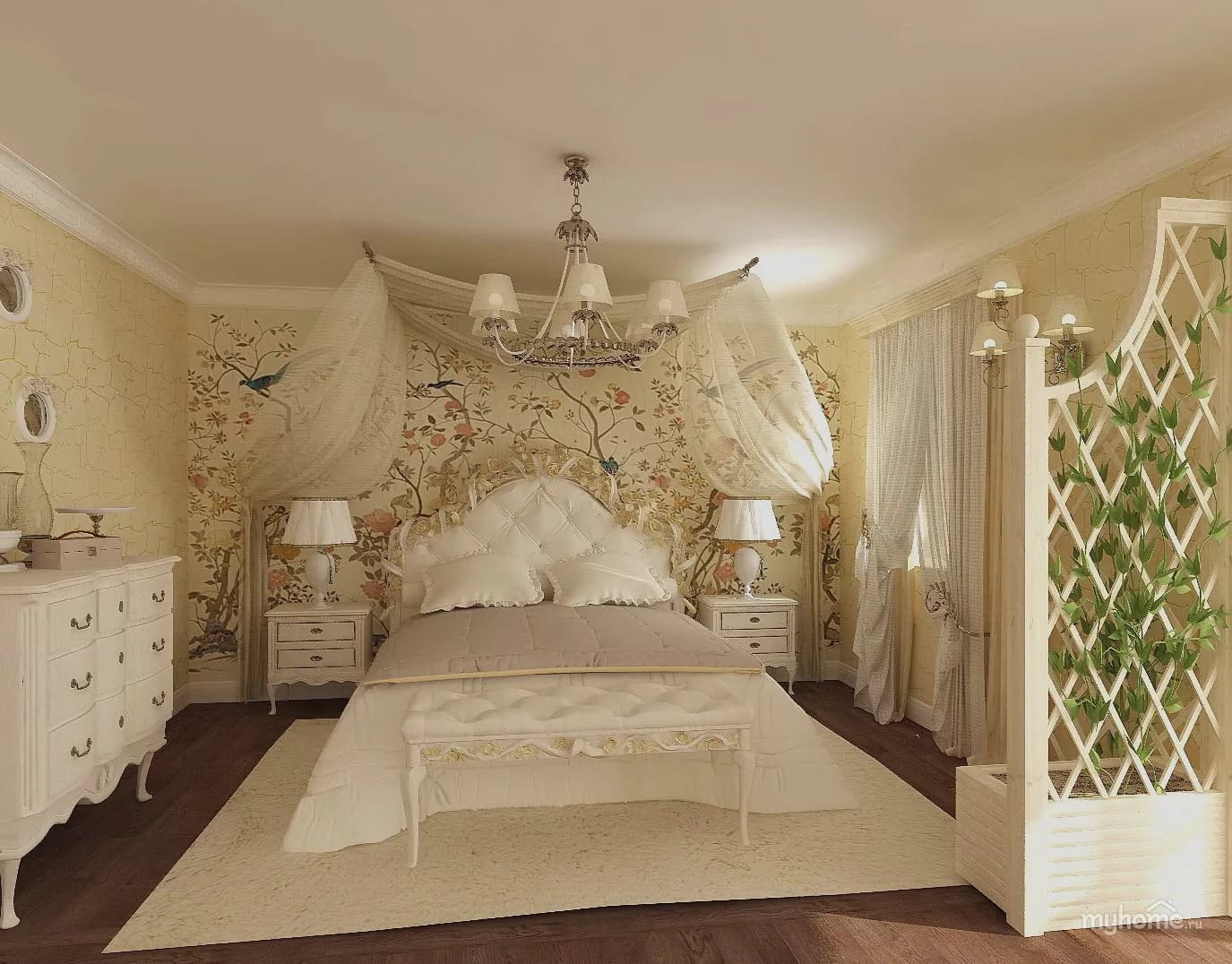 Un esempio di e-polyley in stile provenzale per la camera da letto.