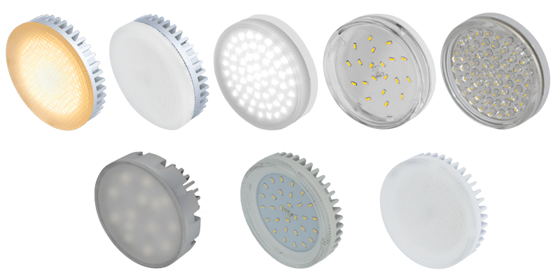 Le lampade a LED Ecola della serie GX53 sono offerte in vari design, colori e forme. indietro kjm sdzharzhanieto ↑