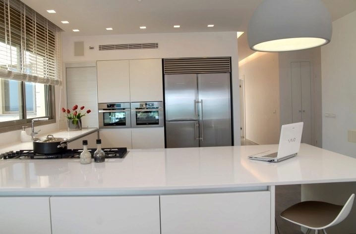 È difficile capirlo con l'aiuto di un riflettore per un'opzione per un tavan per una cucina. È necessario aumentare la potenza della lampada a LED sopra l'albero, cosa indesiderabile per l'estensione in PVC, oppure sì, è necessario aumentare la potenza della sorgente sulla linea luminosa sopra la zona di stoccaggio. Nel bosco mettere una sorgente luminosa a sospensione con una temperatura di 4500K in un paralume o con un aspiratore diffusore ad un'altezza di 50-60 cm sopra la pianura su una zattera su una masata.