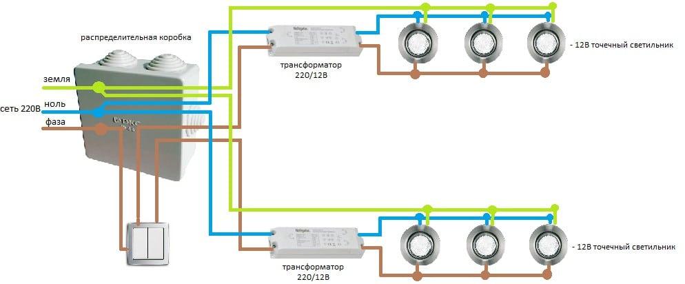 Contenimento: 1. Specie e differenze 2. Tipi di lampade dietro i faretti 3. Vantaggi e svantaggi sotto i riflettori 4. Schema elettrico per 220 V 5. Collegato a proiettori 12V 6. Che prova, sì lo sai, prima e continua con l'installazione 7. Conclusione