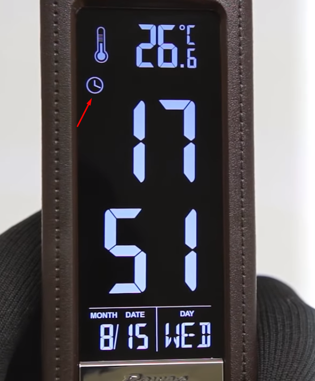 Per sì, impostare la sveglia, se necessario, selezionare la modalità sveglia utilizzando il pulsante "M". L'icona dell'allarme è ora apparsa sul display.
