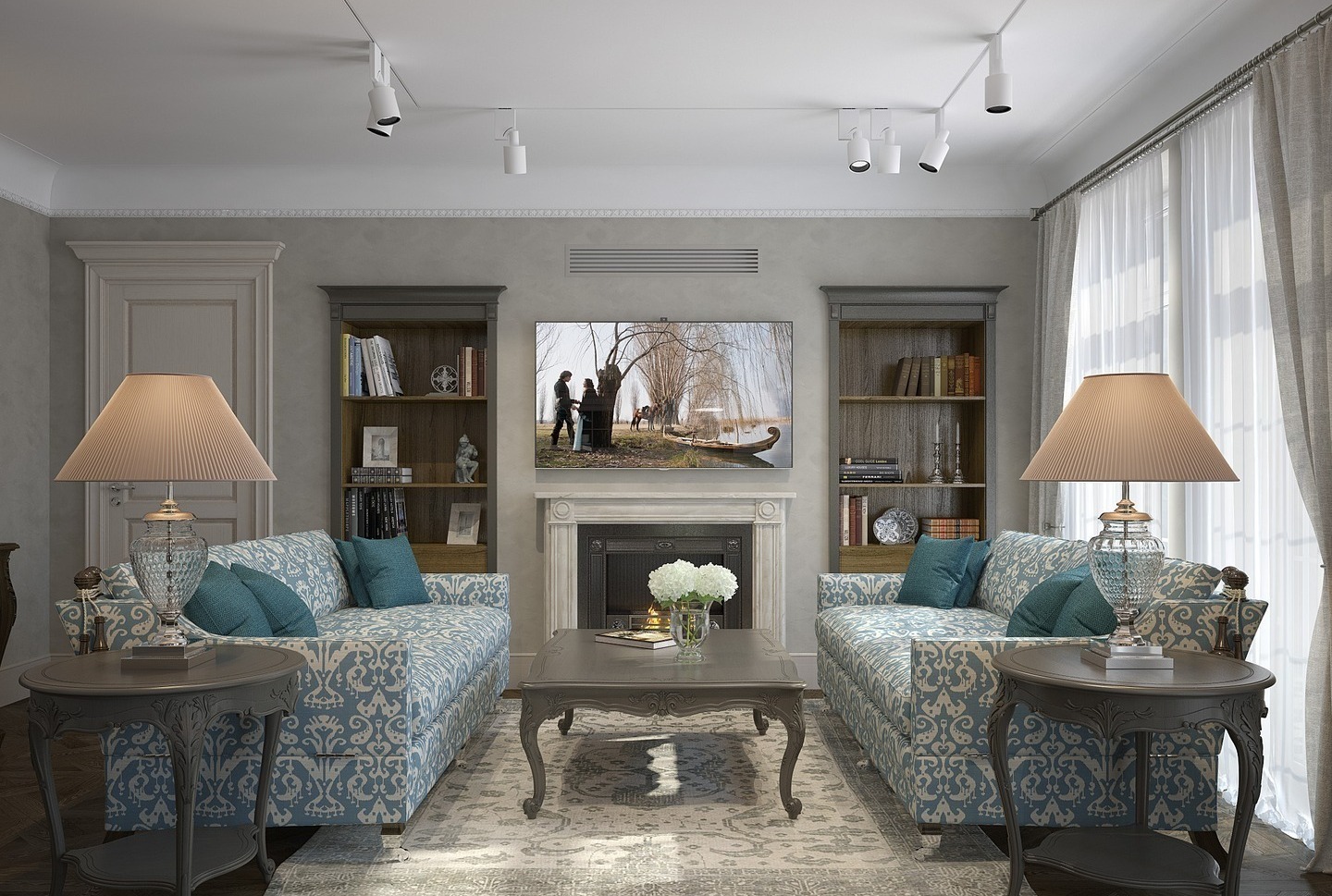 L'interno in stile classico è ancora perfettamente intervallato da una bella lampada in stile classico. In senso buono, sì, scegli colori luminosi e calmi, ad esempio bianco, beige o champagne.