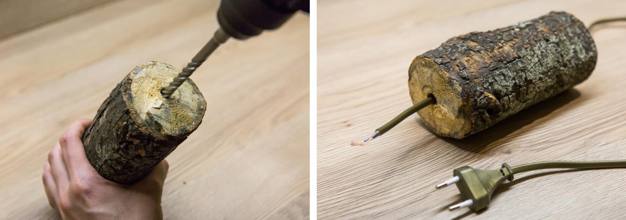 Ora colpiamo due cavità per uno zhitsat in una gornata, spesso su un kolyanoto su una lampata. Regoliamo il gi perpendicolare all'apertura di montaggio. Diametro - 2 mm per gol dal diametro allo zhizat.