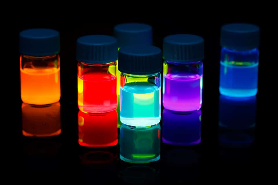 Questo fluoroforo, che brilla al buio, utilizza spesso derivati di rodamina, cianina e aminonaphthalimide. Ma a causa del prezzo elevato di queste sostanze, si tratta di particelle estremamente piccole del polimero, che si aggiungeranno al costo in base al tempo di produzione.