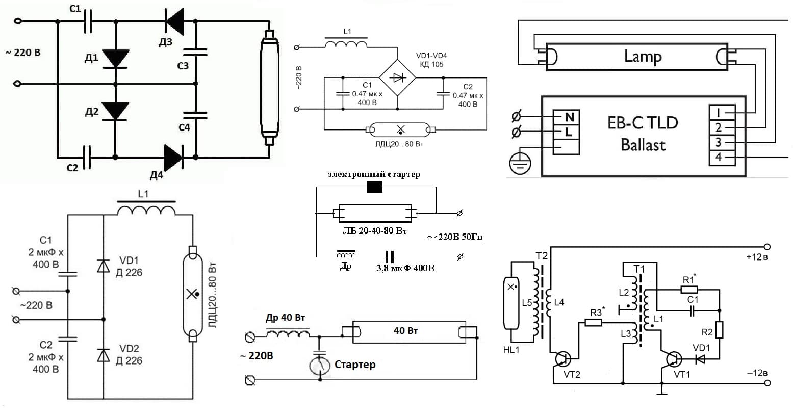 E quindi, perché è sensato avere molti schemi diversi per l'utilizzo di lampade fluorescenti? Molti tipi di schemi sono spiegati con il desiderio di uno sviluppatore e di un dilettante, ma comprenderanno, lo avvieranno su una lampada e altri obiettivi: