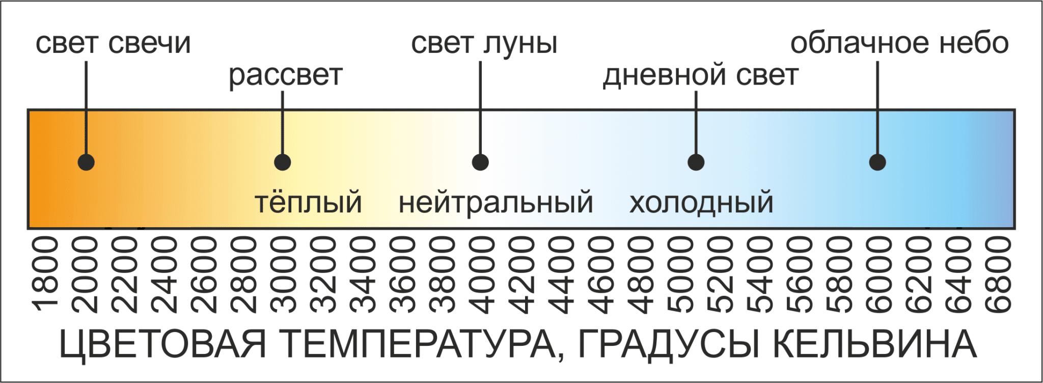 La temperatura del colore sulla lampada è mostrata in una certa misura dallo spettro visivo, è vicina a una luce molto forte. Si misura in Kelvin (K) da 1000 a 10000. La temperatura della luce va da 2700 a 3500 K, era naturale - 3500-4000 K, faceva freddo - 4000-5000 K, era giorno - 5000-6000 K, era luce diurna fredda hva oltre 6500K.